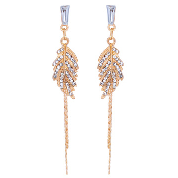 KOLCZYKI LISTKI eleganckie CYRKONIE długie WISZĄCE Boho