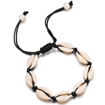BRANSOLETKA damska sznurek MUSZLE muszelki CZARNA
