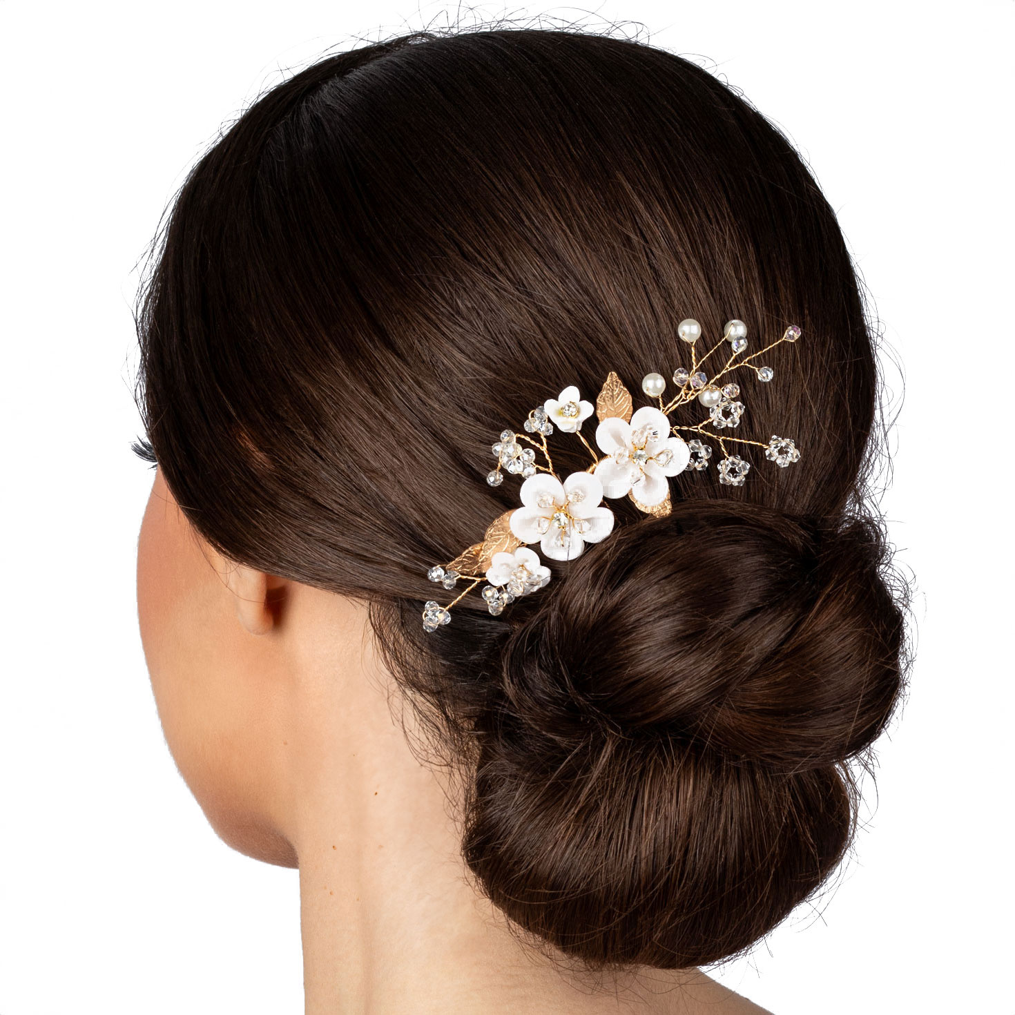 - Ozdoba ślubna do włosów GRZEBYK ŚLUB kryształki kwiaty