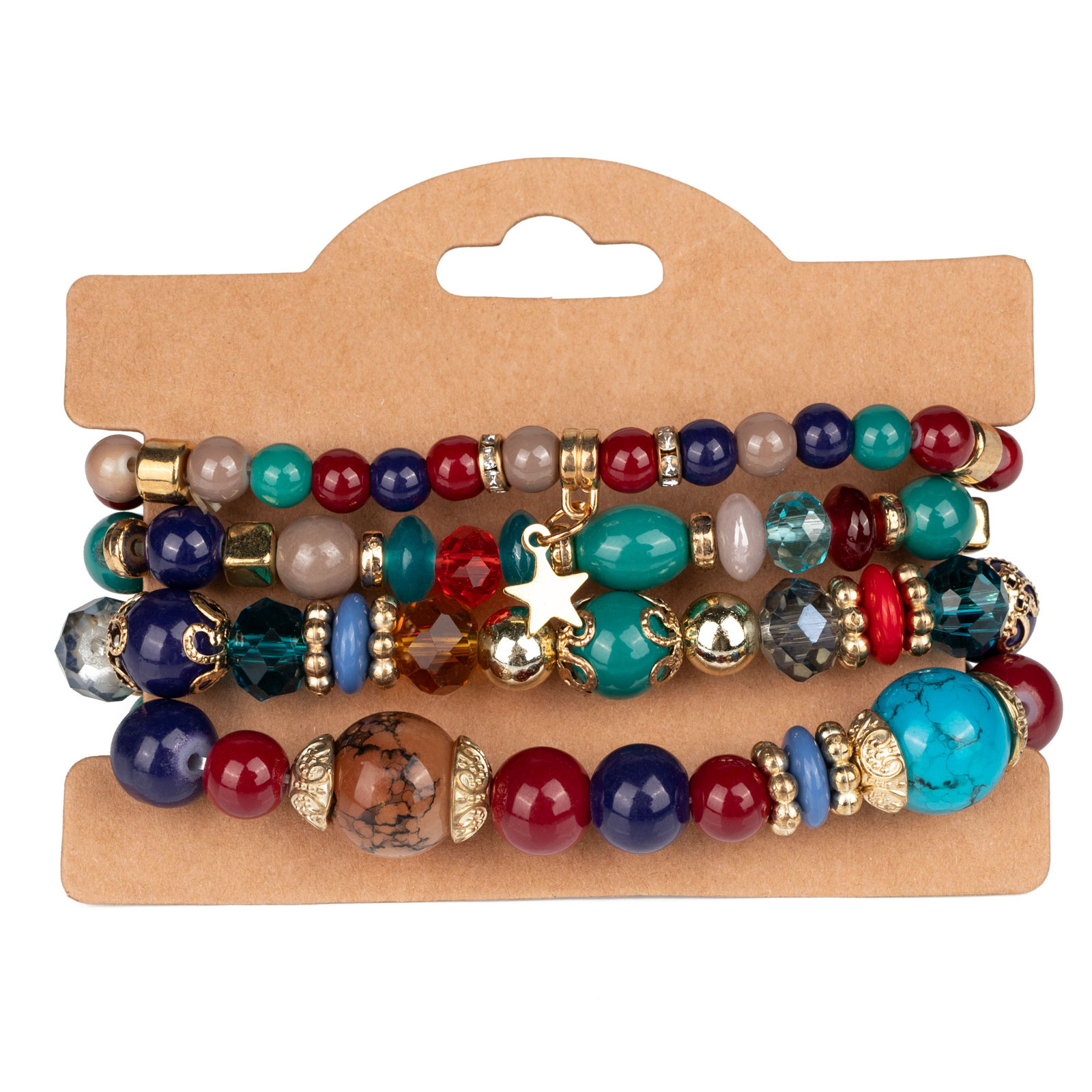 BRANSOLETKI damskie koraliki serce ZESTAW 4 sztuki