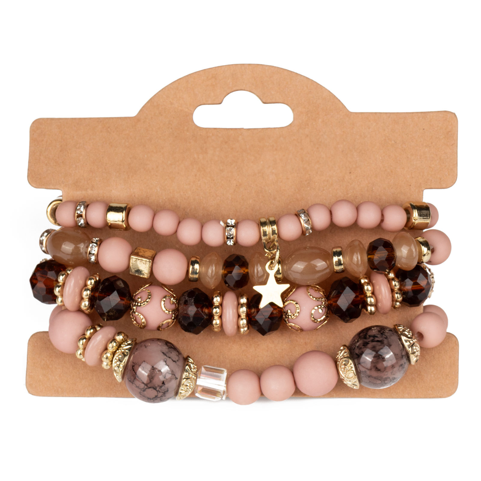 BRANSOLETKI damskie koraliki serce ZESTAW 4 sztuki