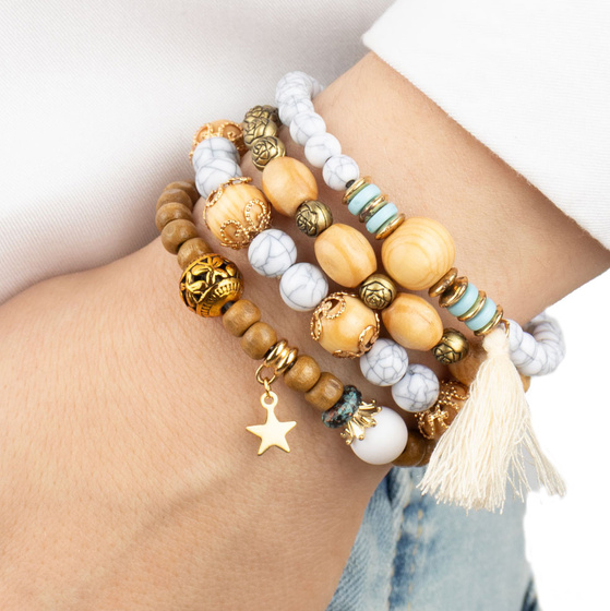 • ZESTAW BRANSOLETEK damska gwiazdka koraliki