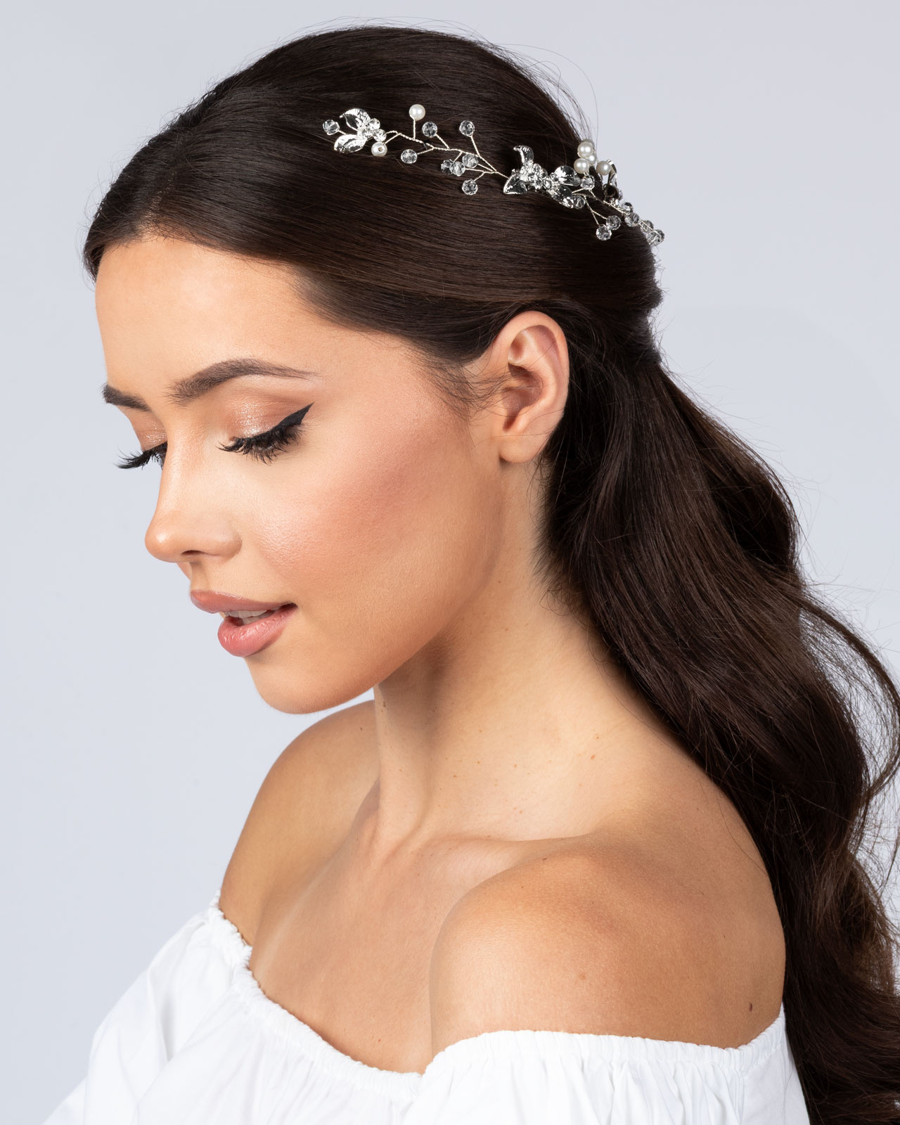 OZDOBA ŚLUBNA do włosów damska PEREŁKI cyrkonie ślub GRZEBYK
