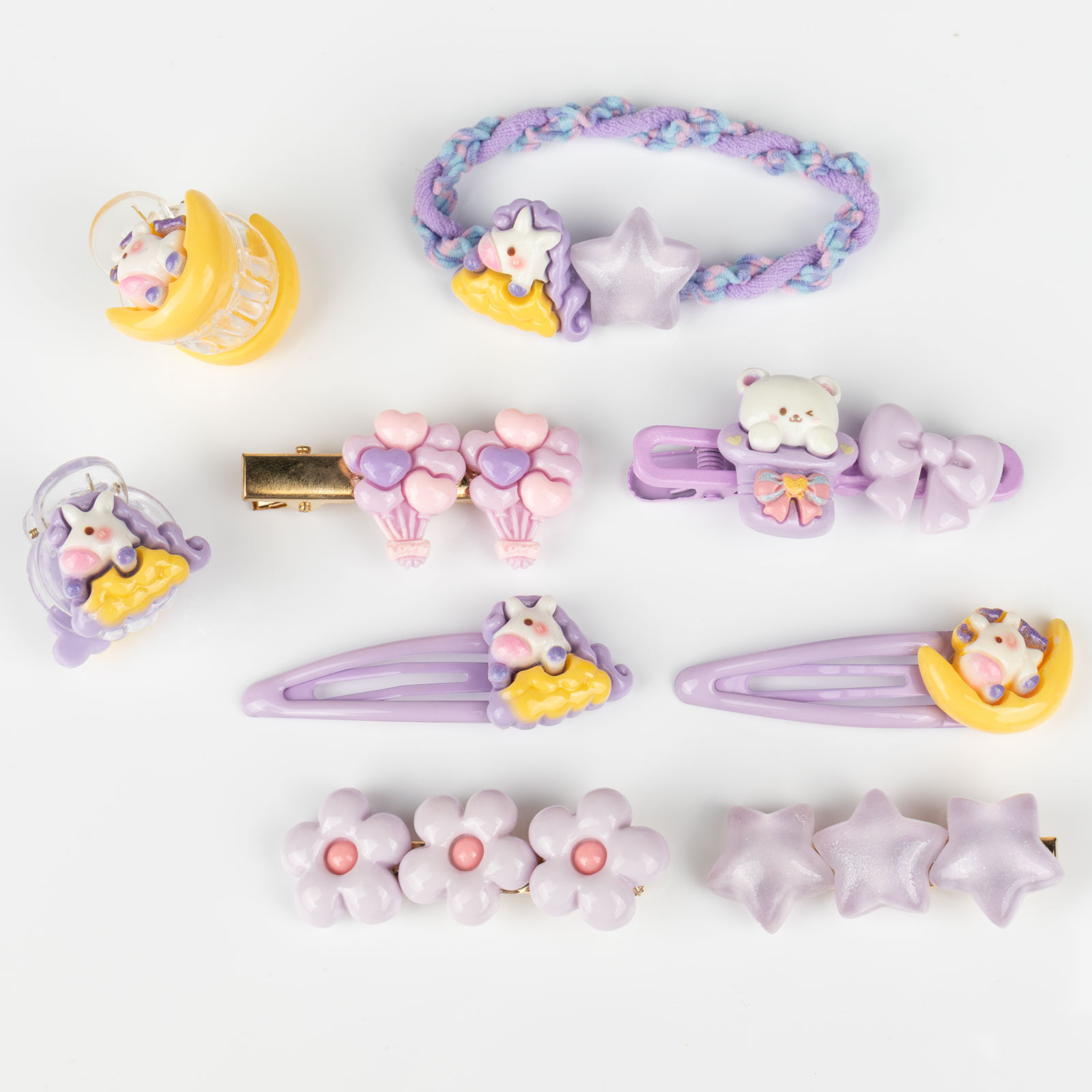 SPINKI DO WŁOSÓW ZESTAW spinek dla dziewczynki PYKI + gumeczka 9 SZTUK