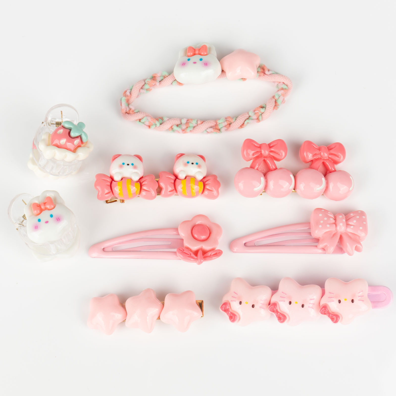 SPINKI DO WŁOSÓW ZESTAW spinek dla dziewczynki PYKI + gumeczka 9 SZTUK