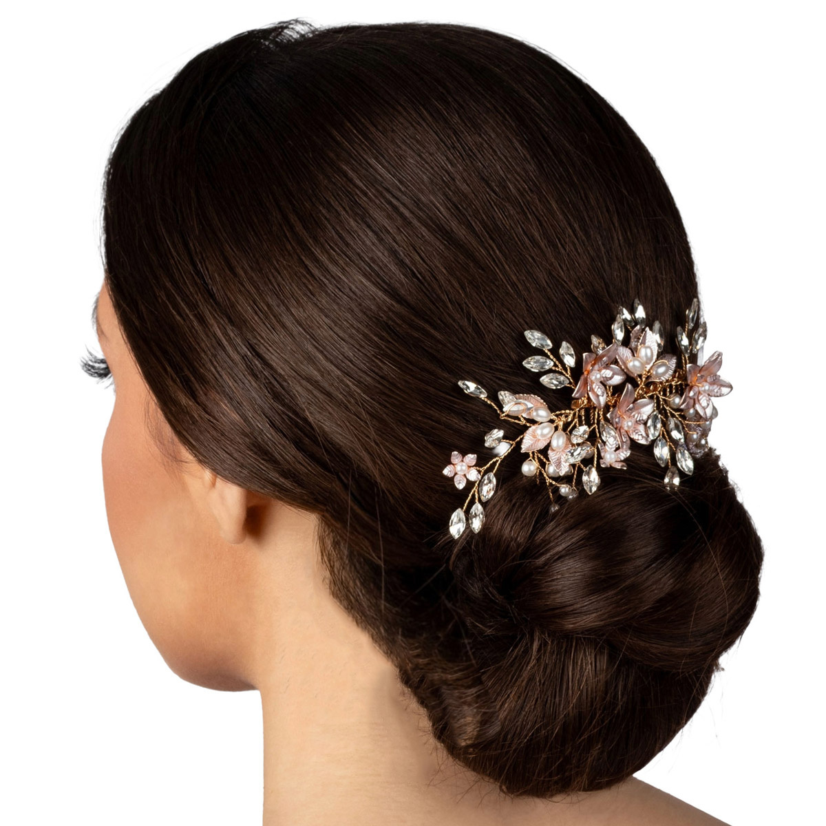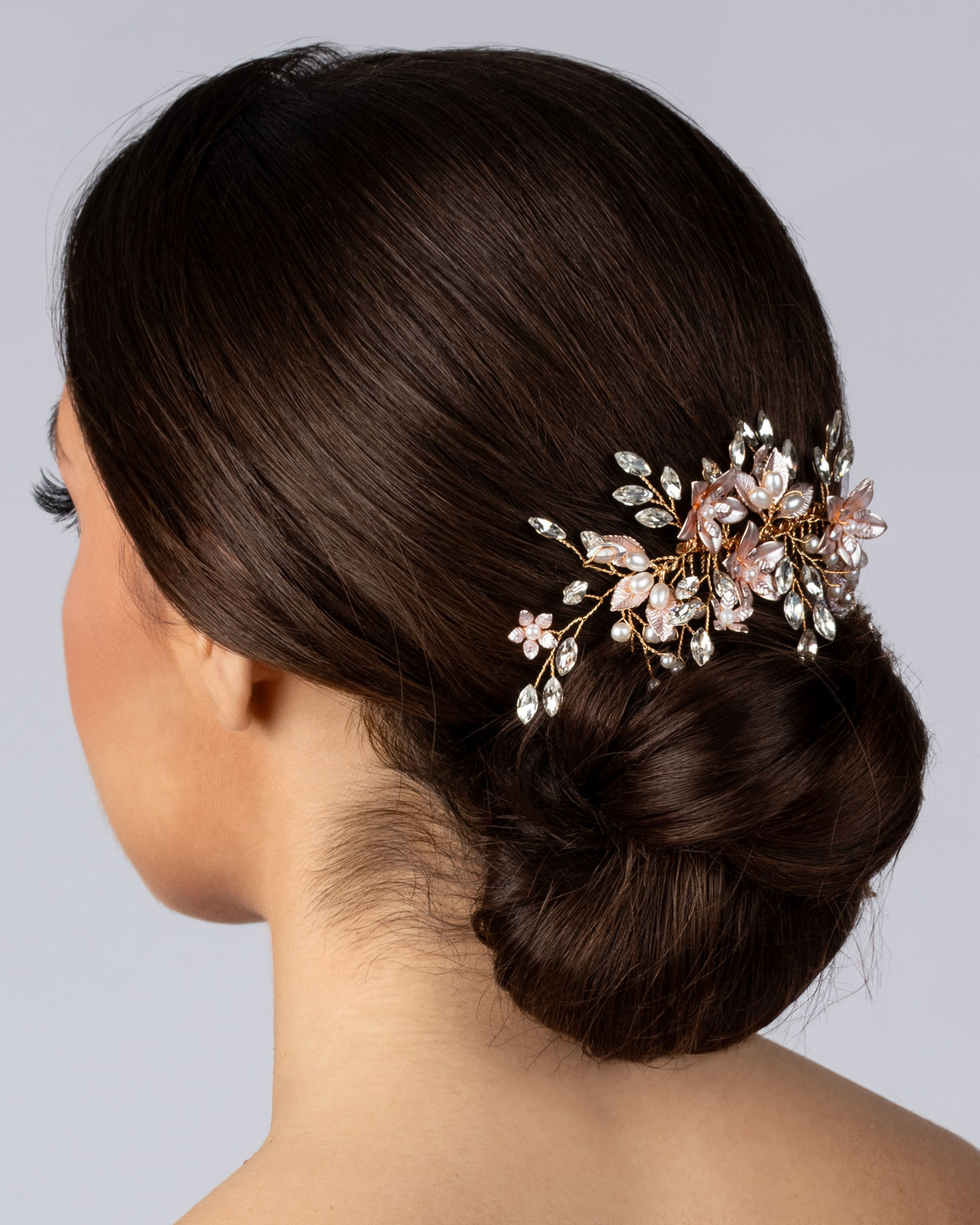 Ozdoba ślubna do włosów GRZEBYK ŚLUB KRYSZTAŁKI KWIATY