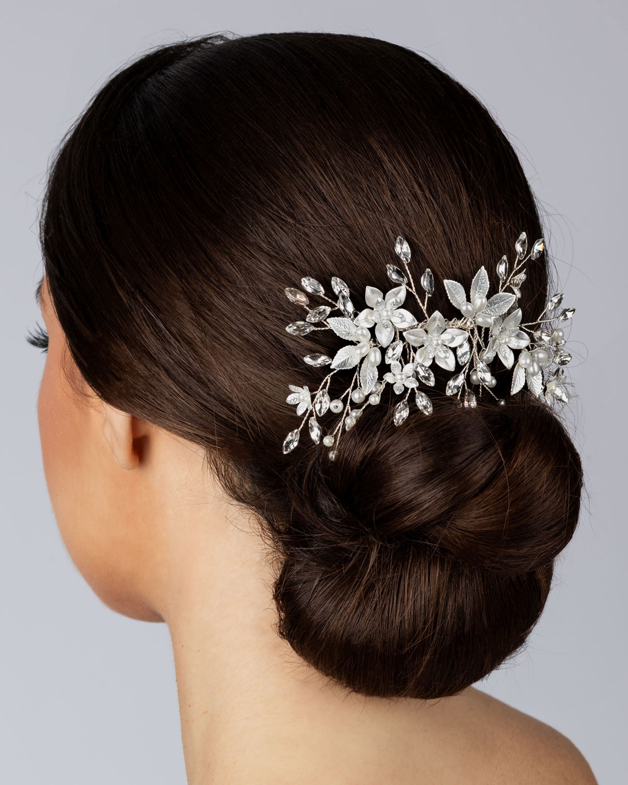 Ozdoba ślubna do włosów GRZEBYK ŚLUB KRYSZTAŁKI KWIATY