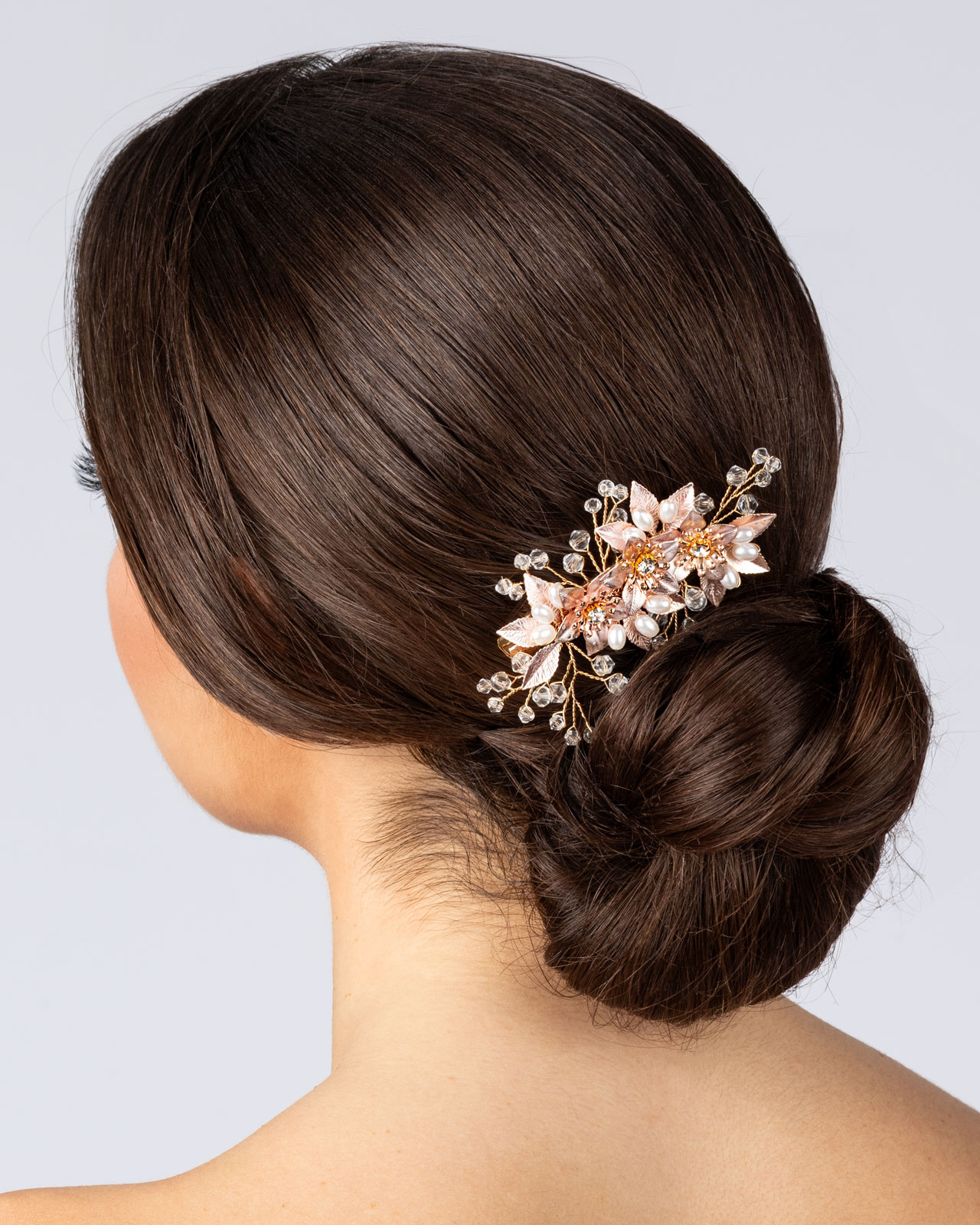 Ozdoba ślubna do włosów GRZEBYK ŚLUB KRYSZTAŁKI KWIATY