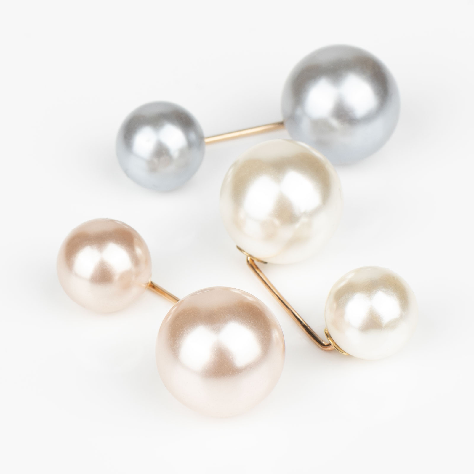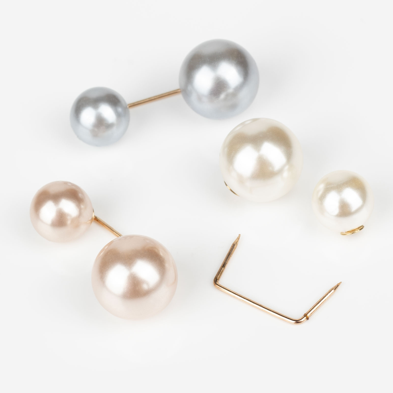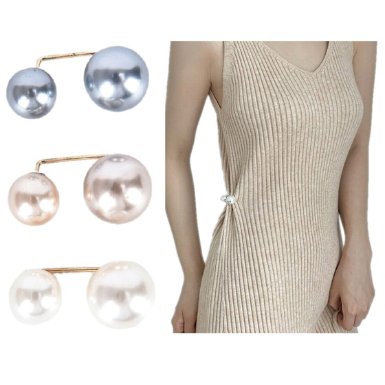 BROSZKA Zestaw 3 szt Biała Różowa Szara PEREŁKI Upięcie Złota PRZYPINKA