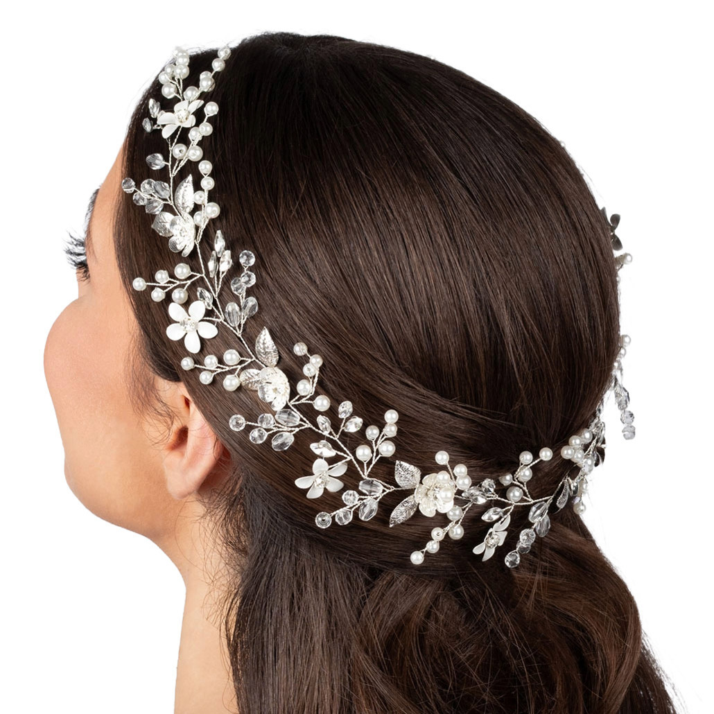 OZDOBA DO WŁOSÓW długa ŚLUBNA STROIK ŚLUB SREBRNA