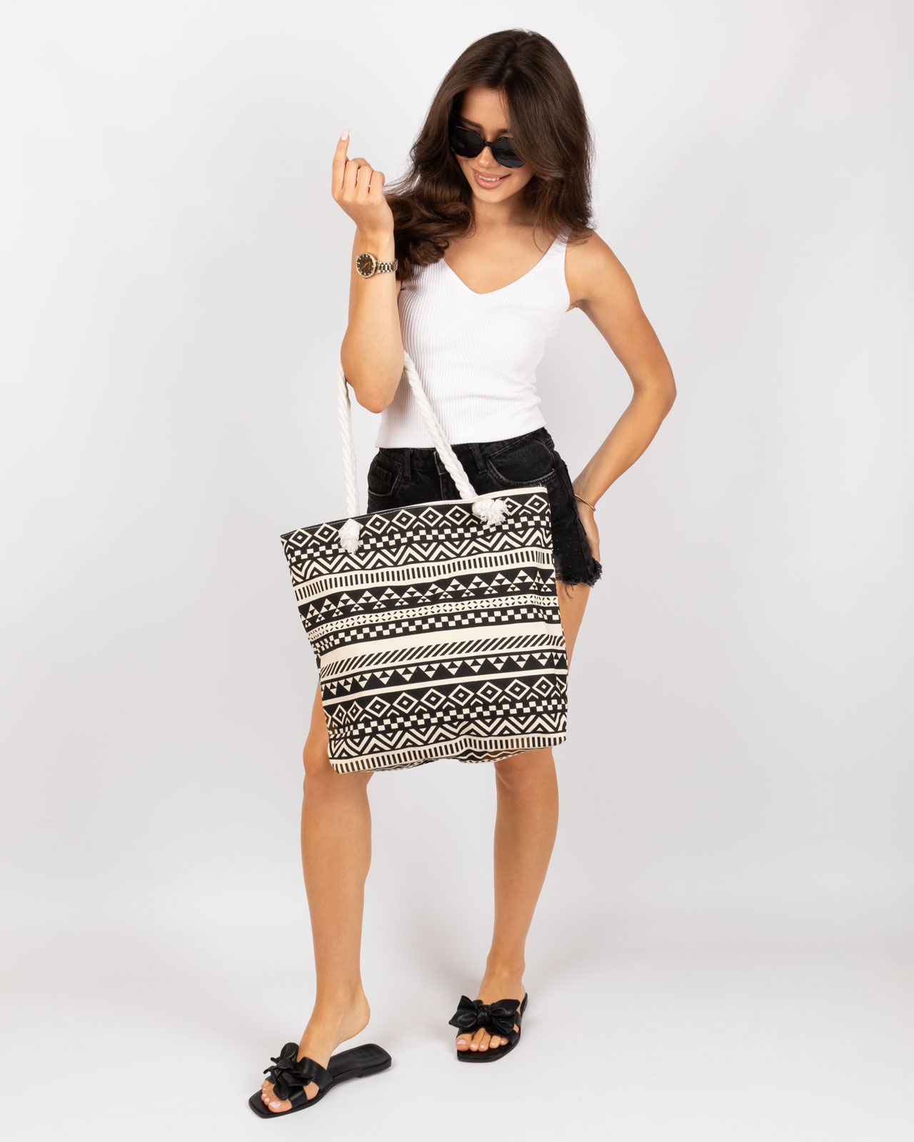 TORBA damska duża PLAŻOWA koszyk shopper LATO na ramię pojemna AZTEK
