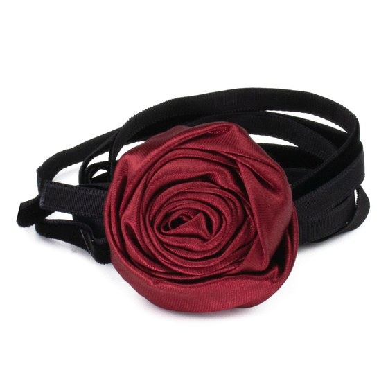 Naszyjnik CHOKER ozdobny KWIAT na szyję RÓŻA na wstążce DELIKATNY CZERWONY