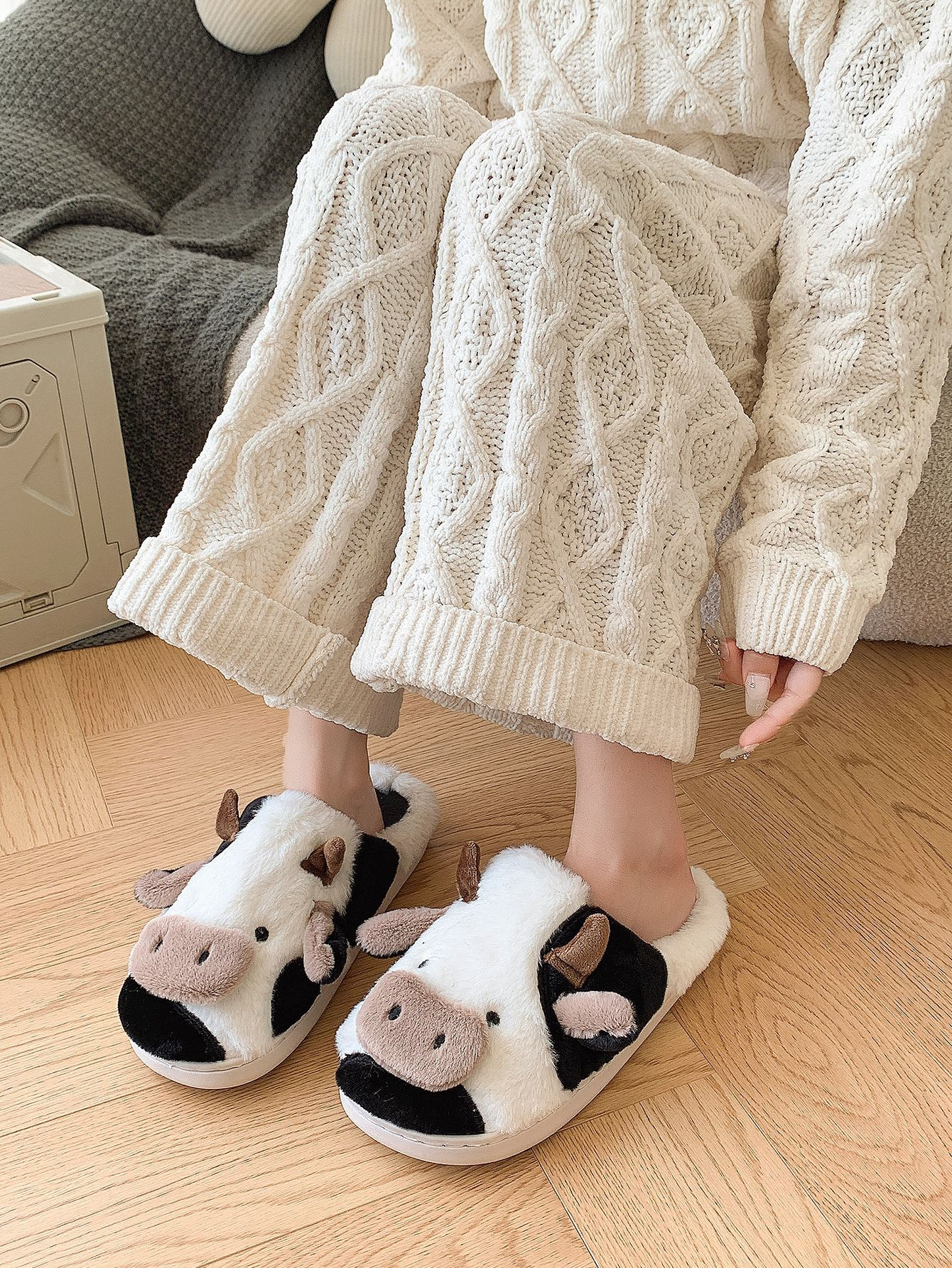 KAPCIE damskie Ciepłe PLUSZOWE CIAPY OCIEPLANE KROWA KRÓWKA r. 38-39