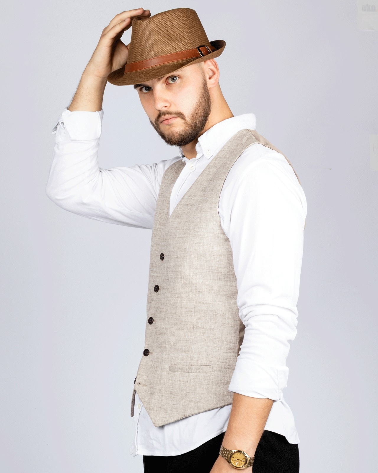 kapelusz posiada wstążkę ściągającą dzięki której można zmniejszyć obwód kapelusza