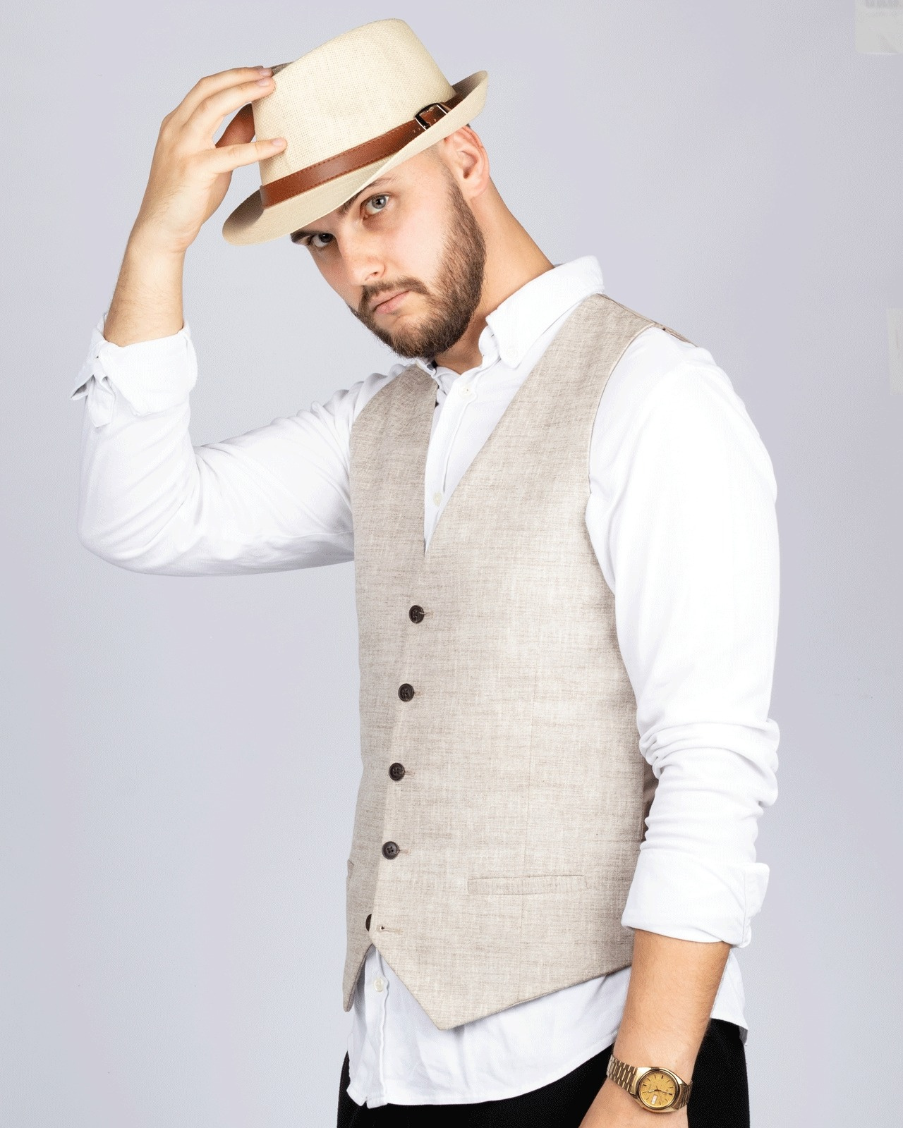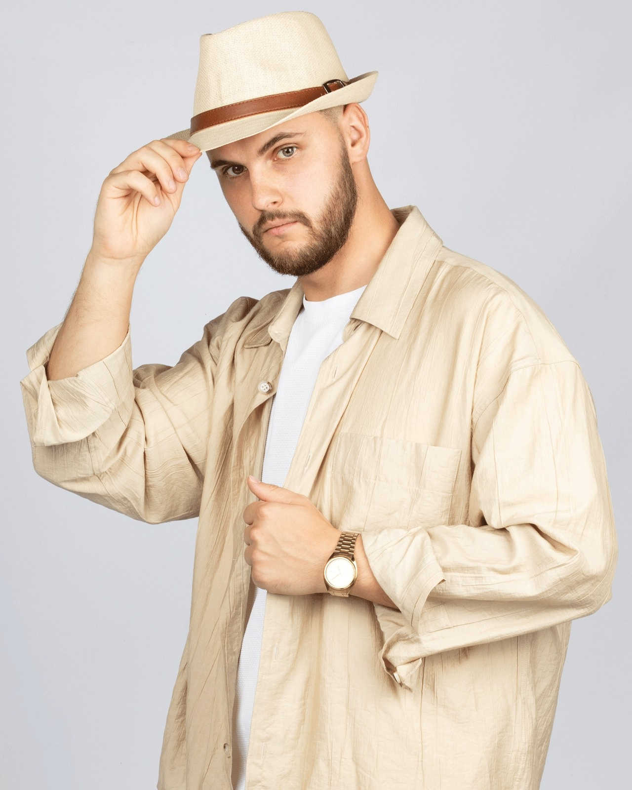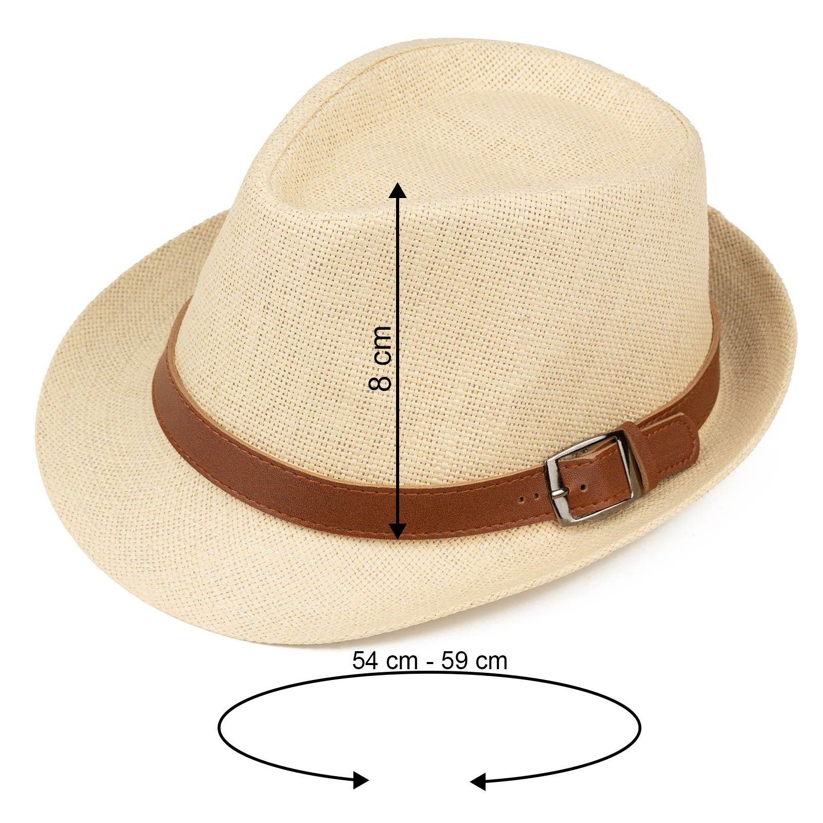 kapelusz posiada wstążkę ściągającą dzięki której można zmniejszyć obwód kapelusza