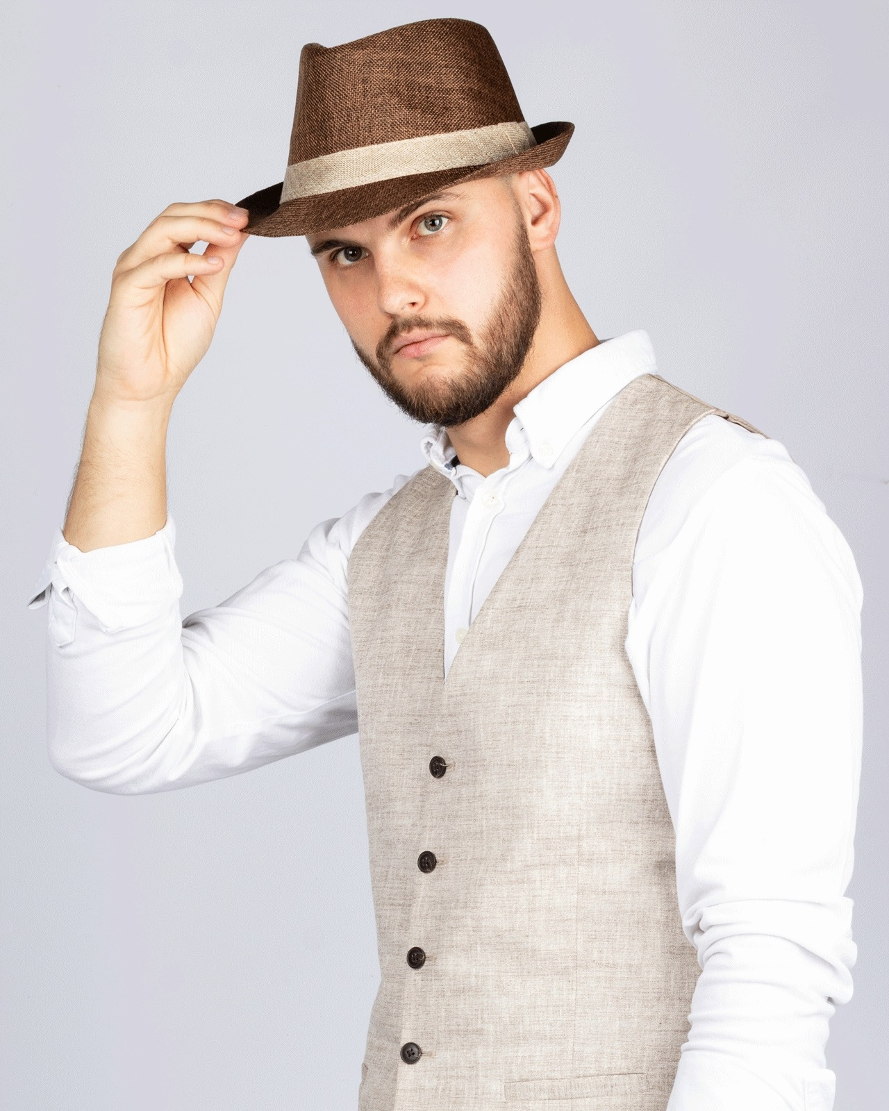 , kapelusz posiada wstążkę ściągającą dzięki której można zmniejszyć obwód kapelusza