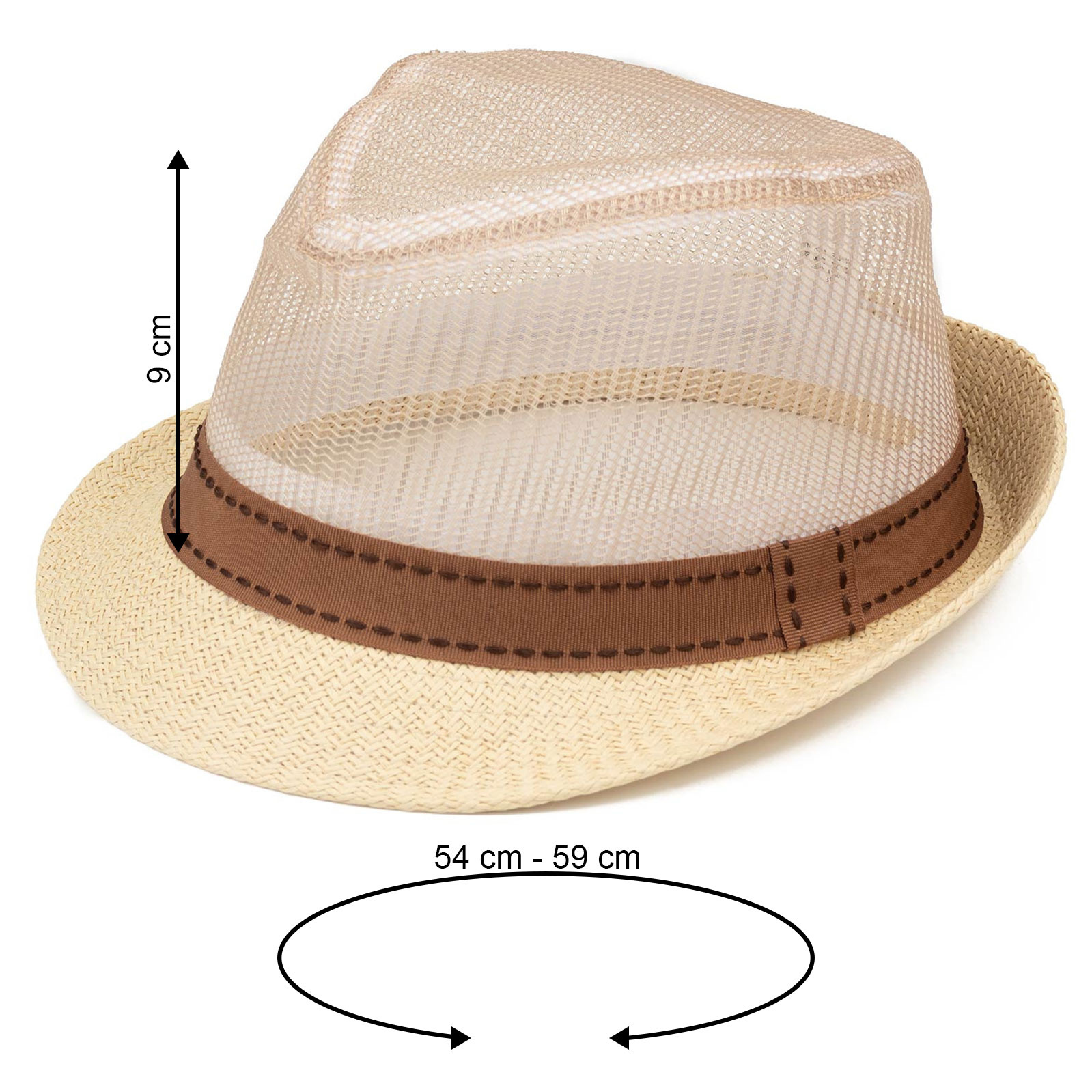 kapelusz posiada wstążkę ściągającą dzięki której można zmniejszyć obwód kapelusza