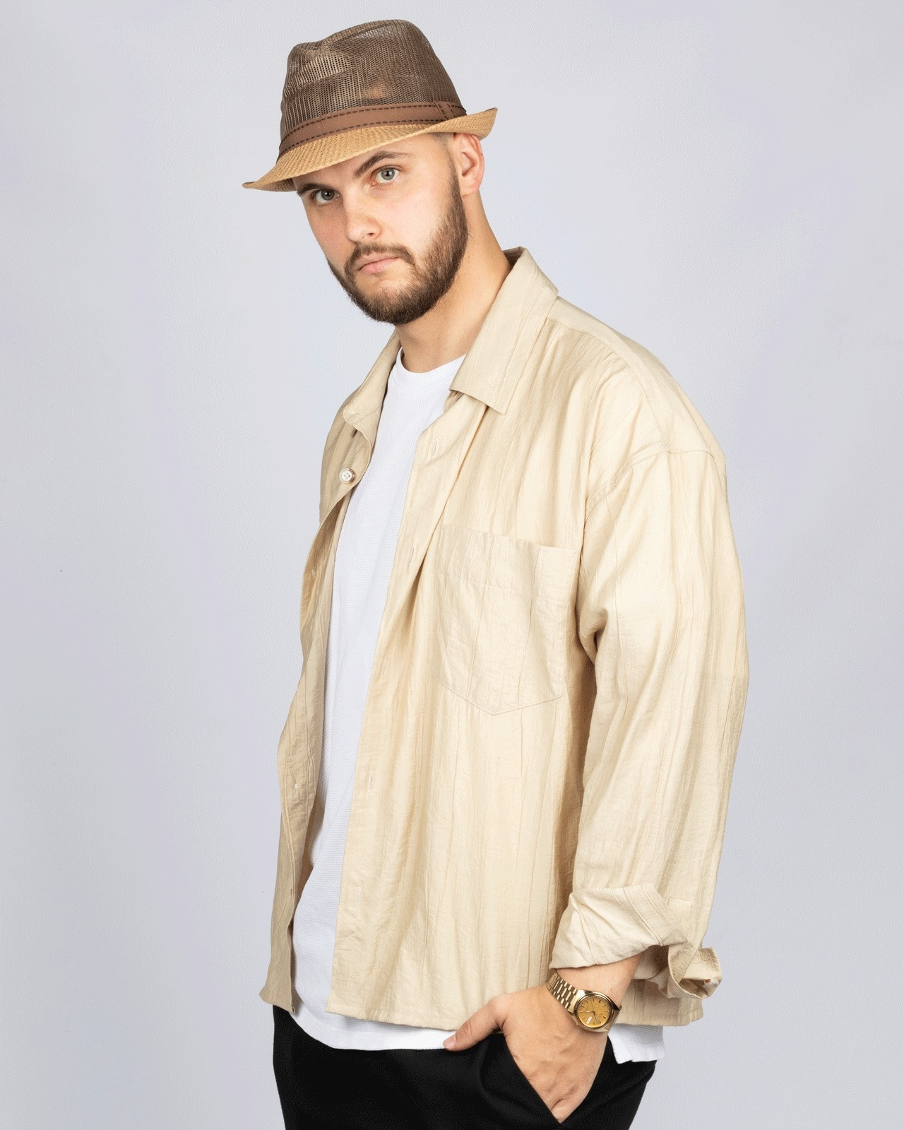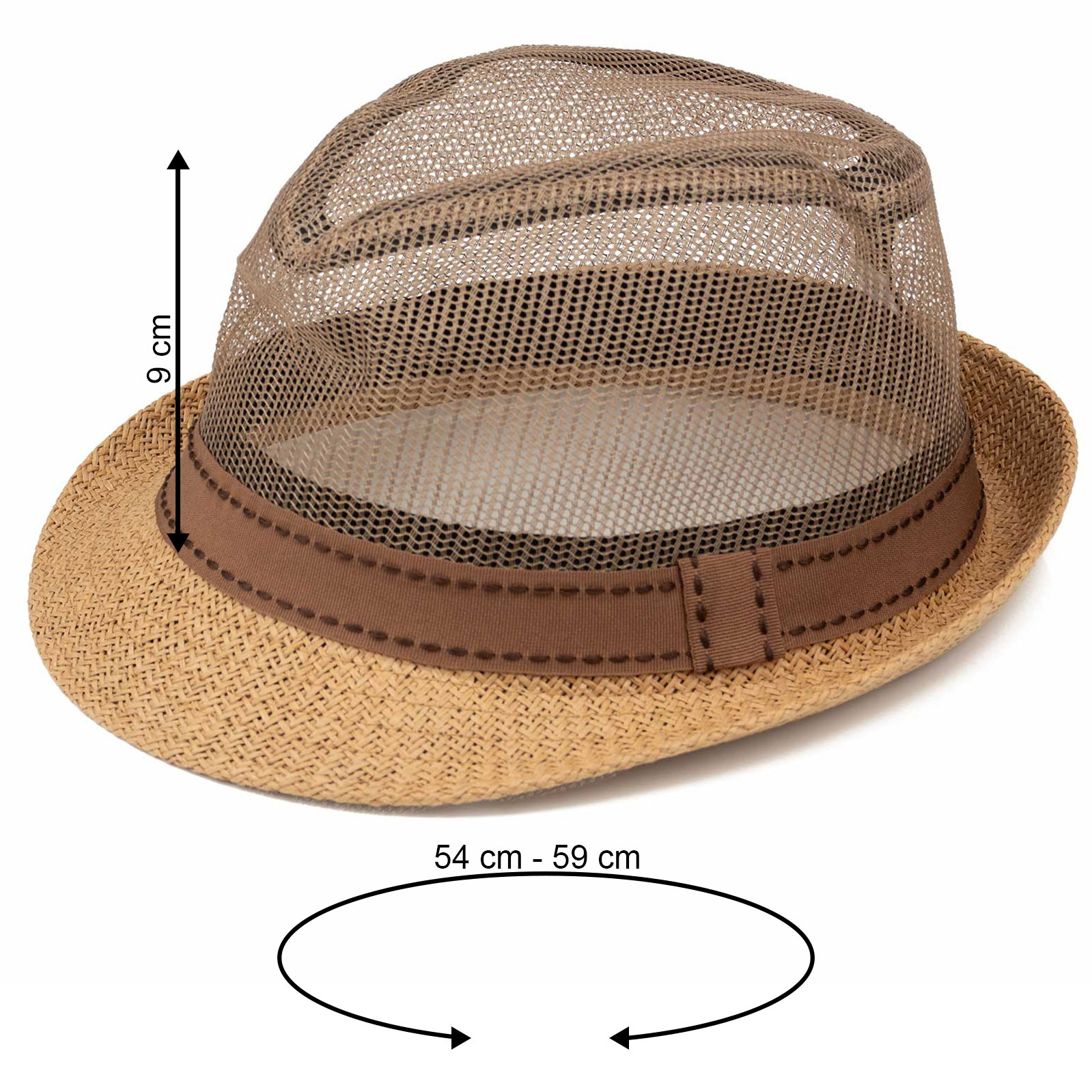 kapelusz posiada wstążkę ściągającą dzięki której można zmniejszyć obwód kapelusza