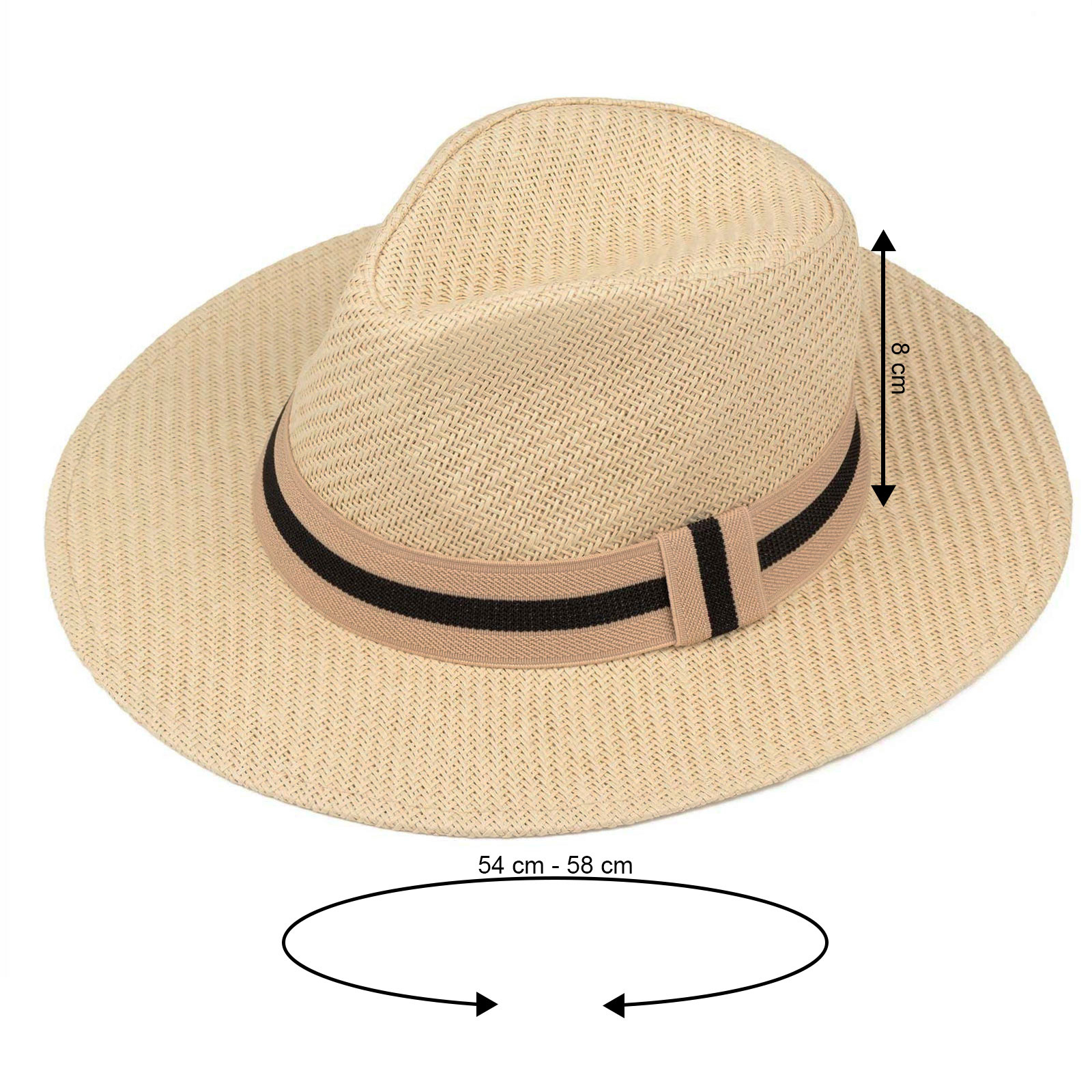 kapelusz posiada wstążkę ściągającą dzięki której można zmniejszyć obwód kapelusza