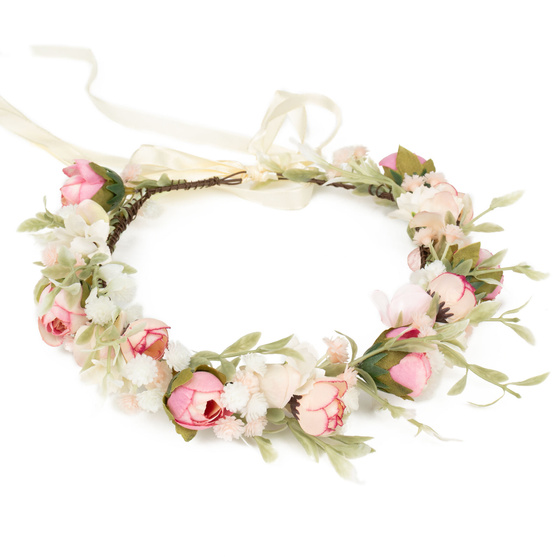 , Wianek z delikatncyh, biało-różowych kwiatków