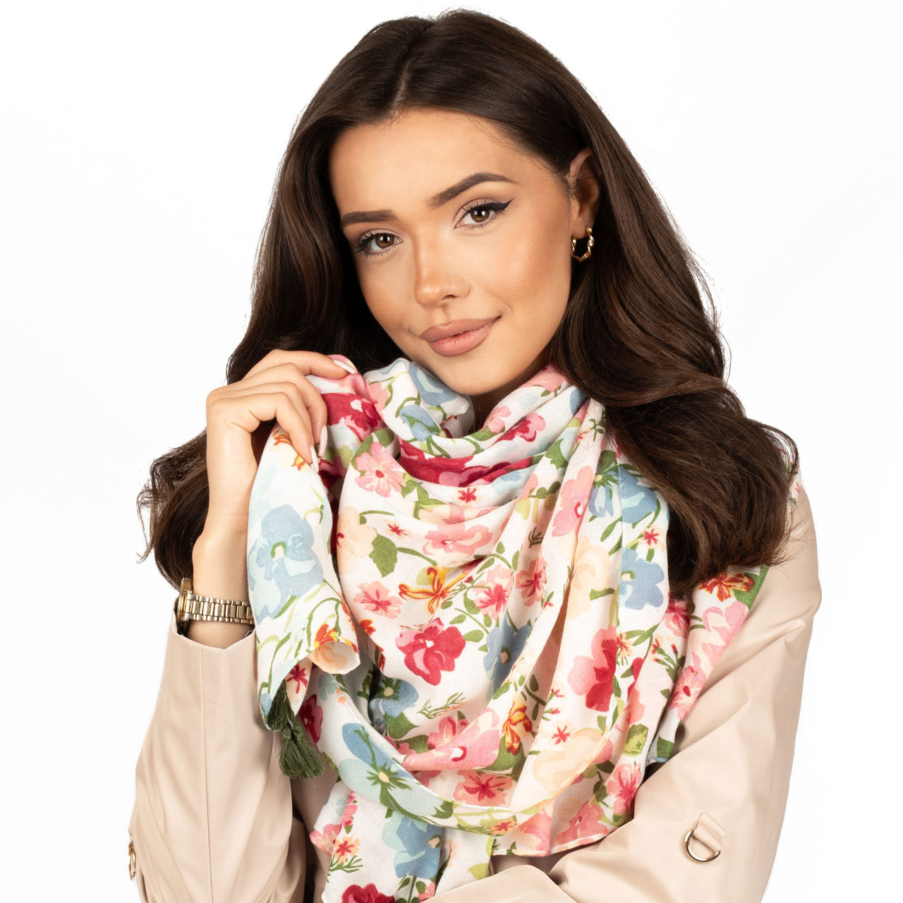 Cienka chusta z kwiatowym wzorem