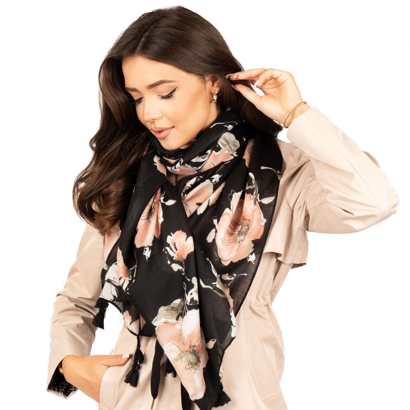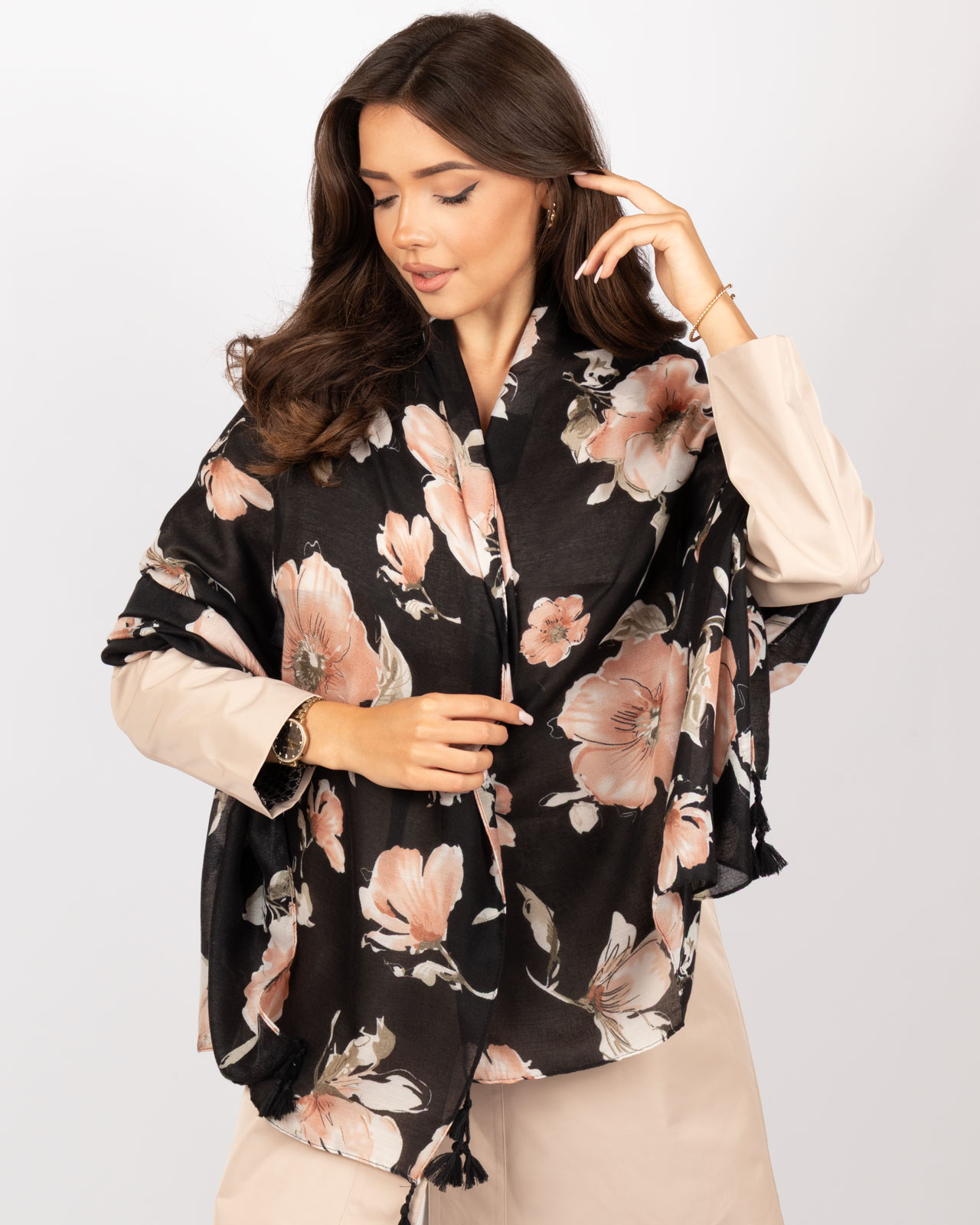 Cienka chusta z kwiatowym wzorem