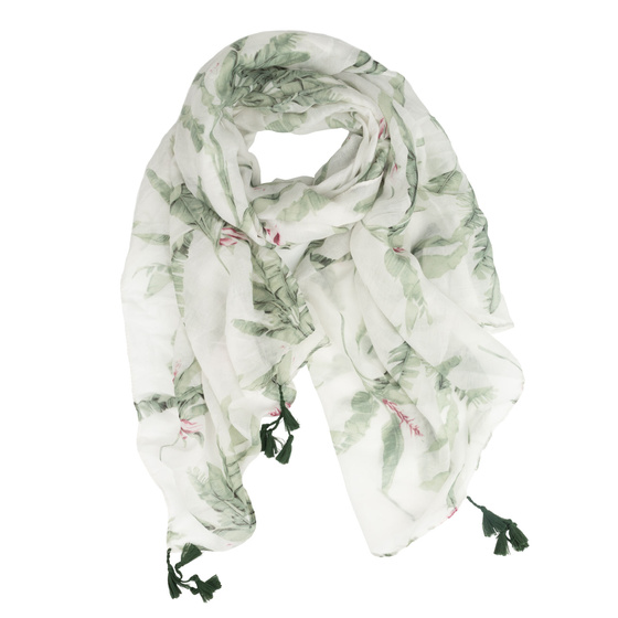 Cienka, prześwitująca chusta z roślinnym wzorem