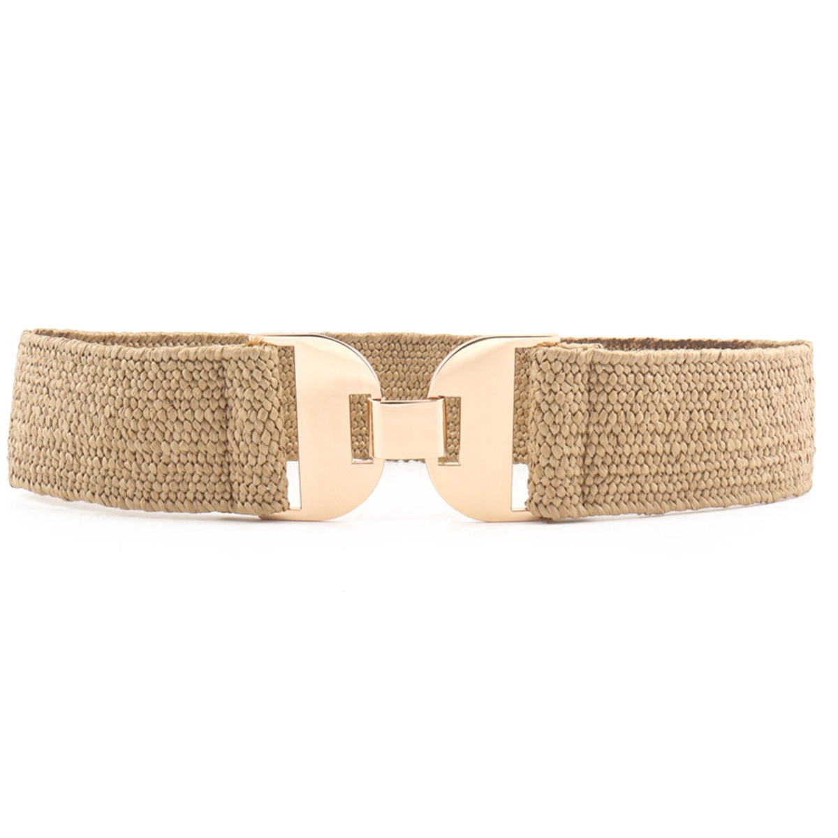 PASEK PLECIONY damski Alessio słomiany BEŻOWY ELASTYCZNY LATO rozmiar S