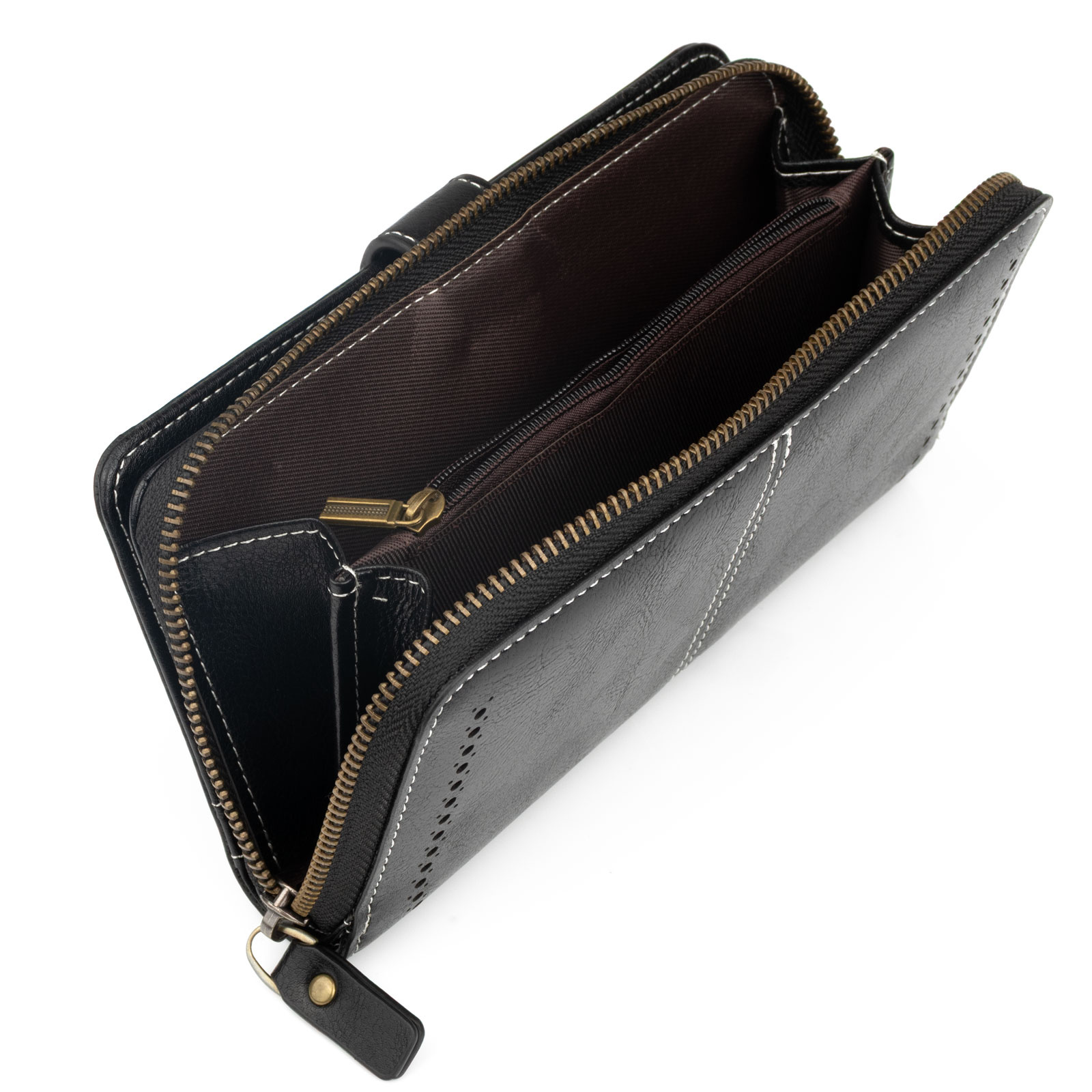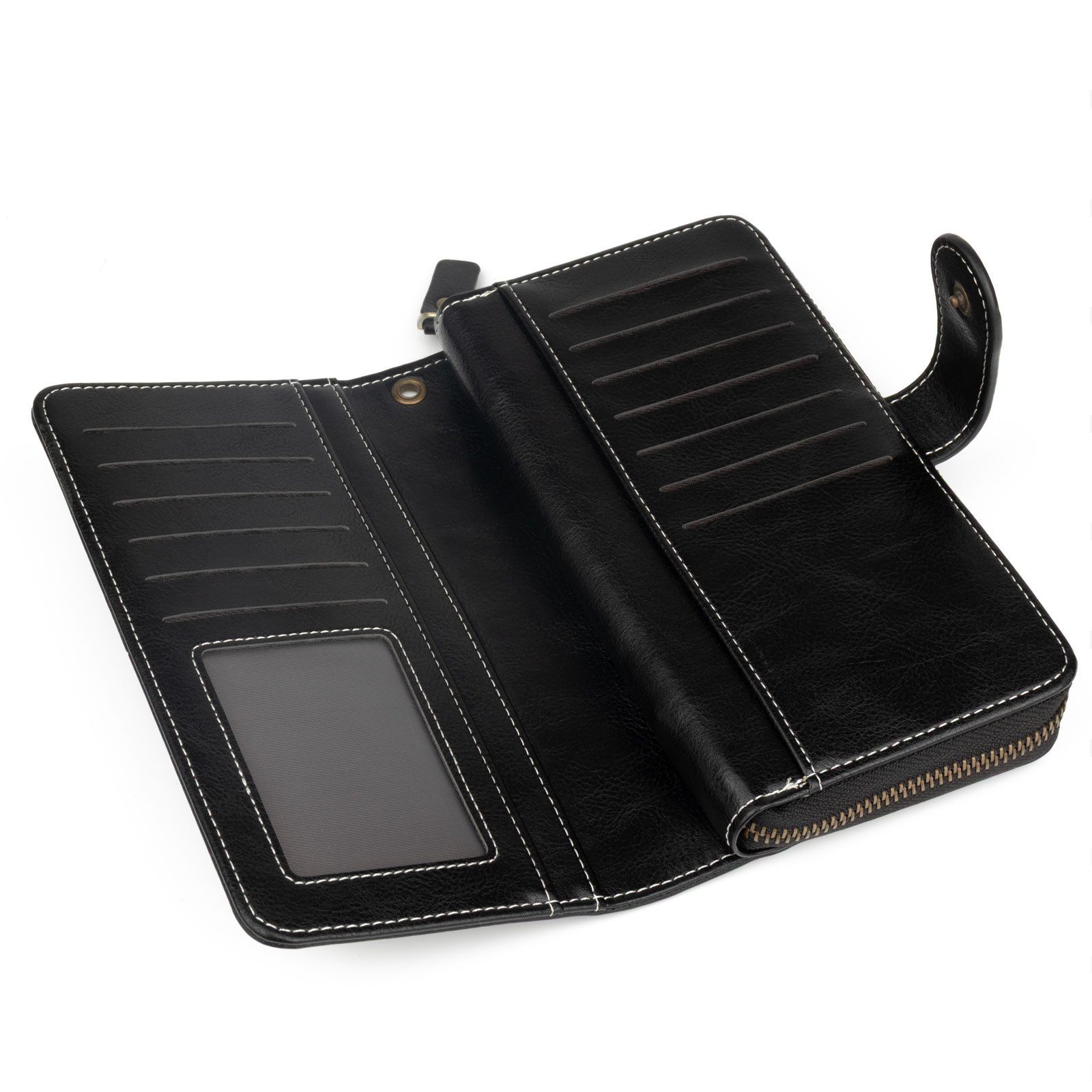 Portfel posiada 20 różnych komór i kieszonek: na banknoty, monety, karty bankowe, zdjęcie, dokumenty (m.in. dowód rejestracyjny)