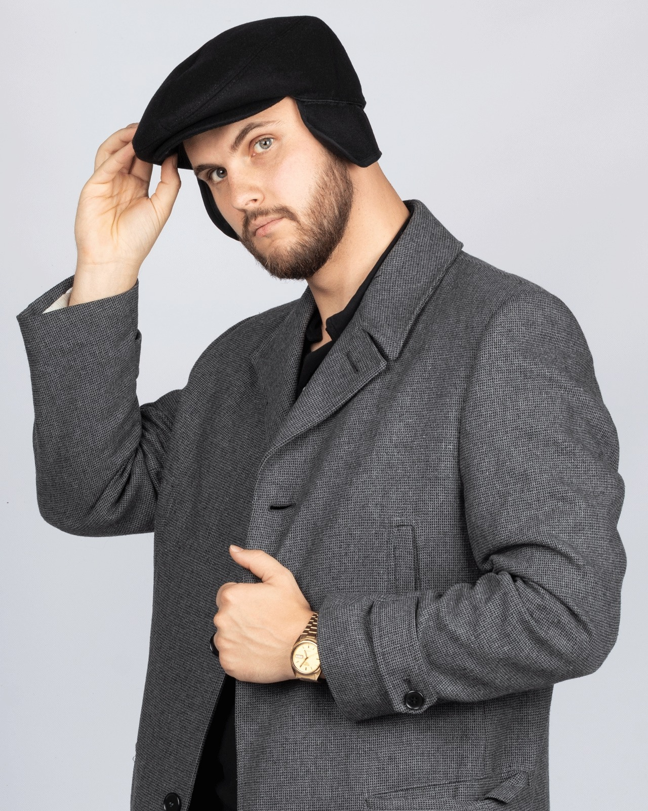 KASZKIET Męski Alessio NAUSZNIKI FLAT CAP Jesień Zima Czapka RETRO