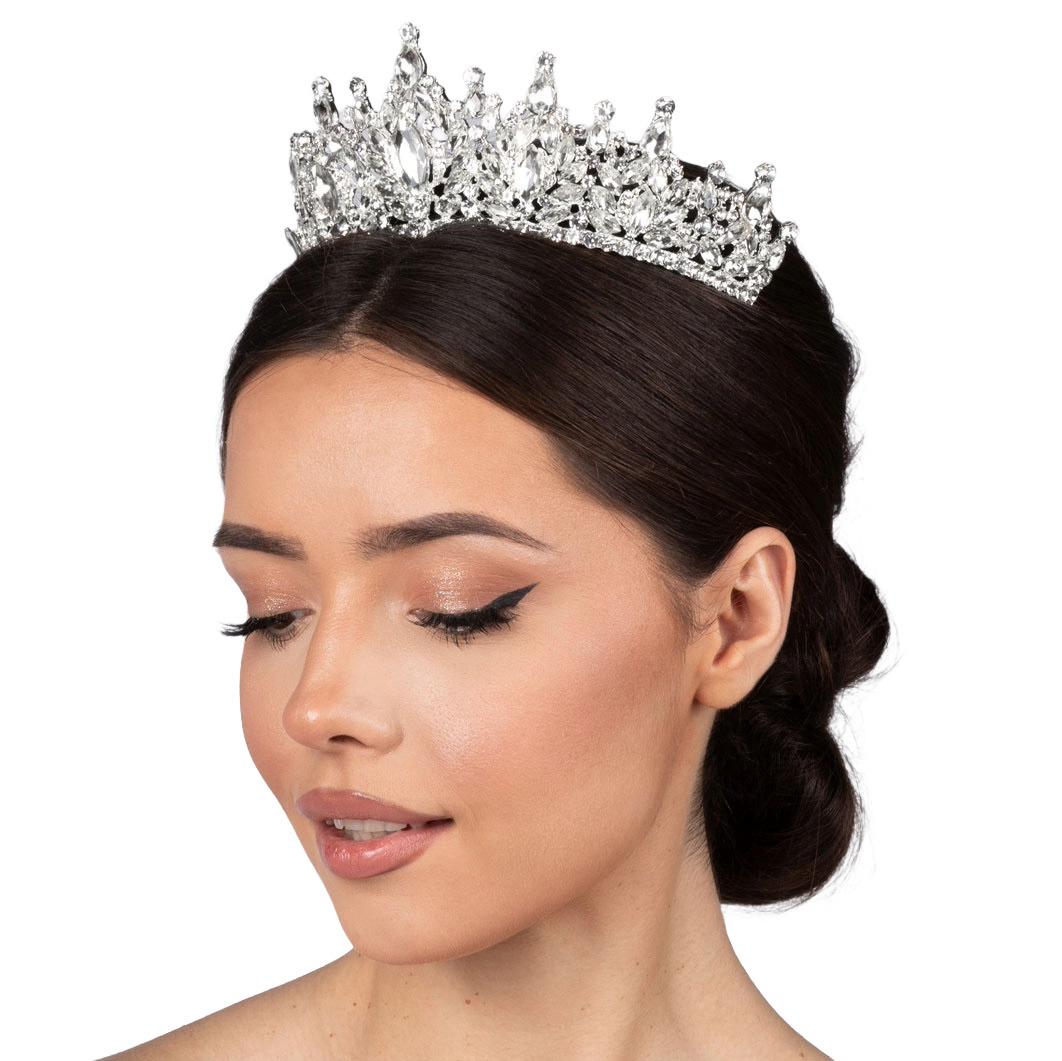 DIADEM Korona Tiara MISS GLOW ŚLUBNY srebrny cyrkonie KRYSZTAŁY