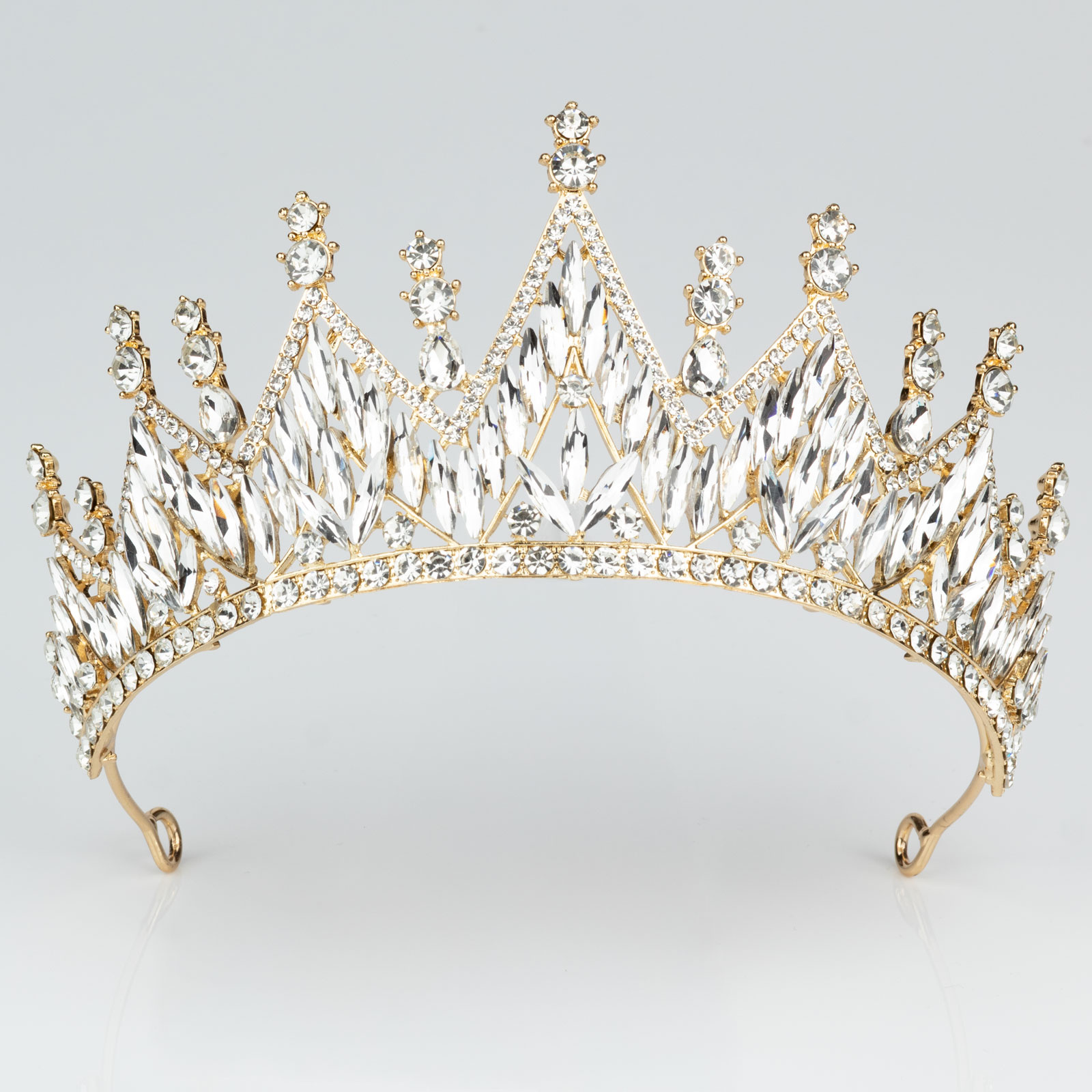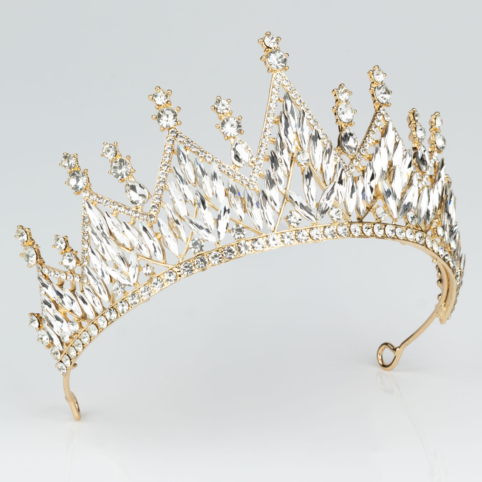 DIADEM Korona Tiara MISS GLOW ŚLUBNY ZŁOTY cyrkonie KRYSZTAŁY