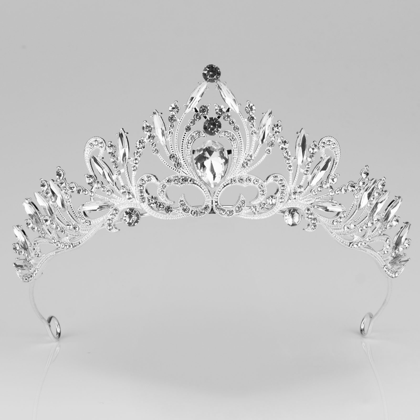 DIADEM Korona Tiara MISS GLOW ŚLUBNY srebrny cyrkonie KRYSZTAŁY
