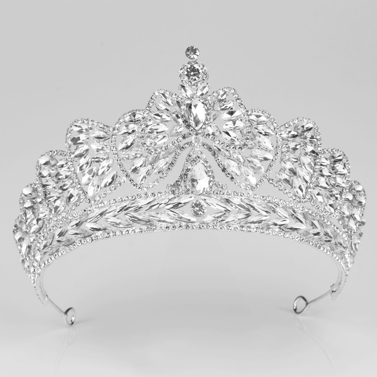 DIADEM Korona Tiara MISS GLOW ŚLUBNY srebrny cyrkonie KRYSZTAŁY
